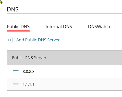So in the DNS section Public and Internal are set like this. (100.100 is used internally at client)